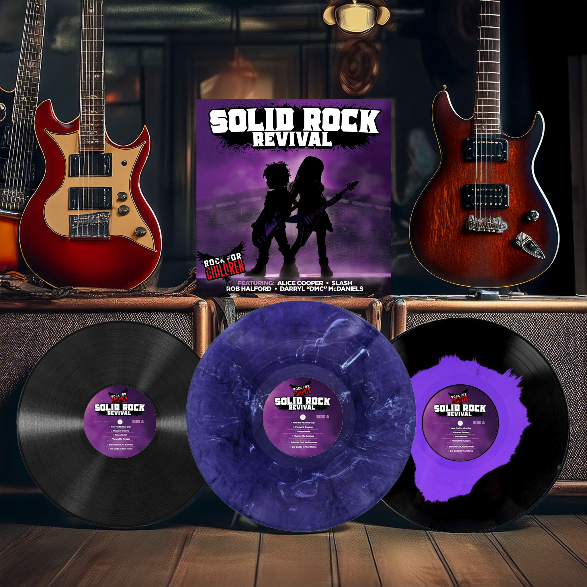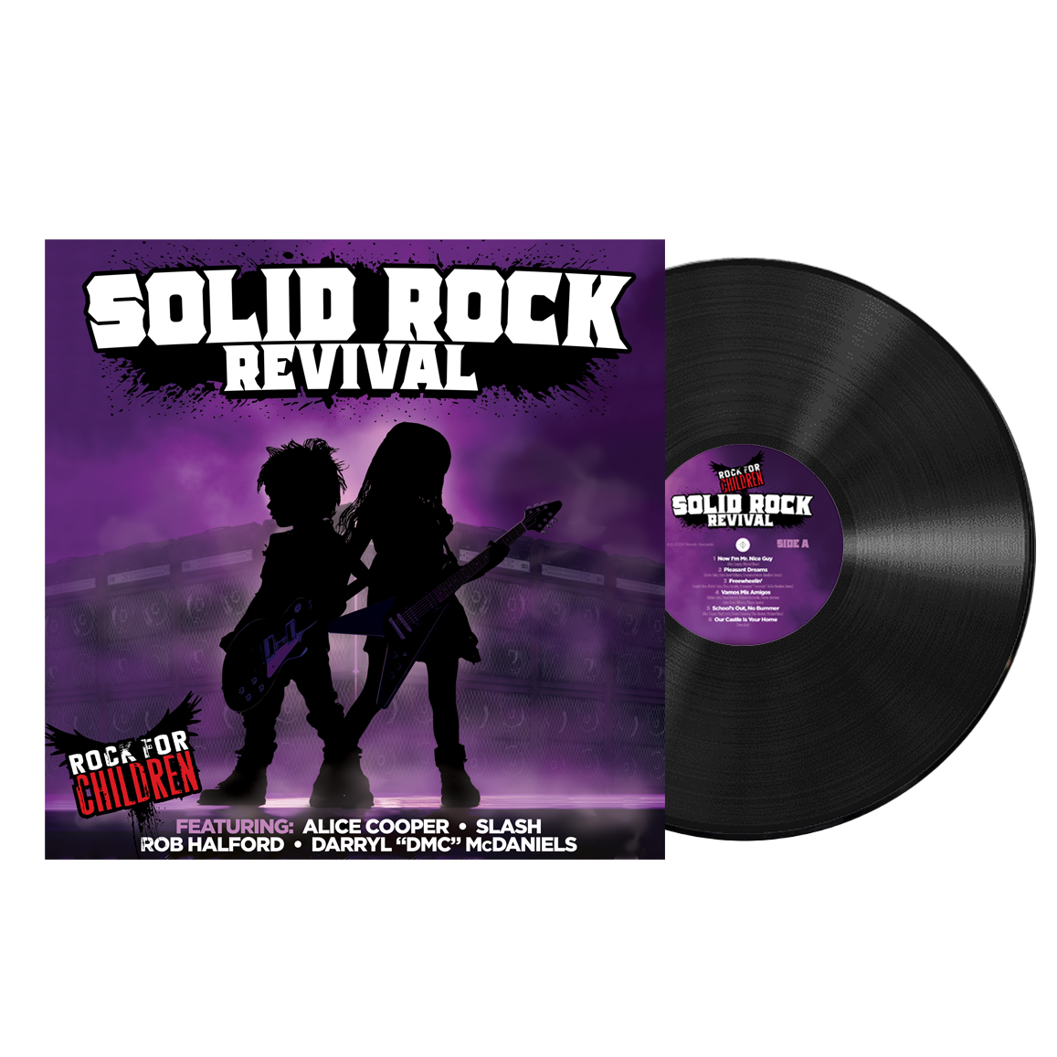 Released in August 2024 and nominated for a GRAMMY® Award for Best Children’s Music Album, Solid Rock Revival is a full-length studio album featuring performances and song remakes by the Rock for Children band, headlined by legendary artist Alice Cooper, and featuring other well-known musicians including Slash, Rob Halford, and RUN DMC’s Darryl “DMC” McDaniels. Proceeds from the sale of the album, as well as live concerts and special events, will benefit Alice Cooper’s Solid Rock Teen Centers through the generous support of The Norelli Family Foundation.